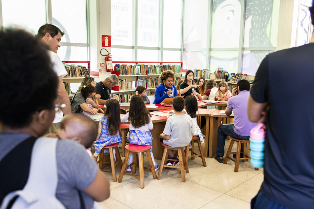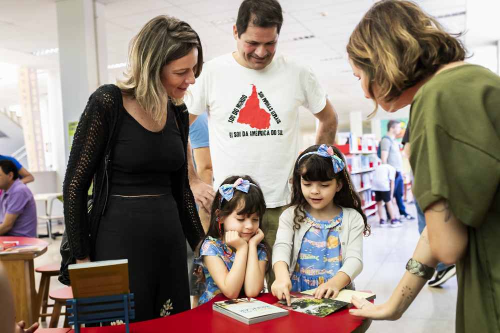 No parque, pertim da natureza, as crianças participaram de uma oficina-vivência para “Ler o mundo” com o Roquinho, de onde surgiram encantamos. Na biblioteca, em meio ao rico acervo de livros para os pequenos, eles ouviram histórias sobre a cidade com a mediação da Fabiana Brasil.