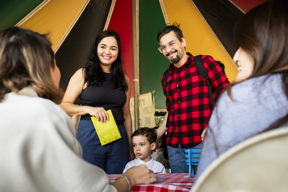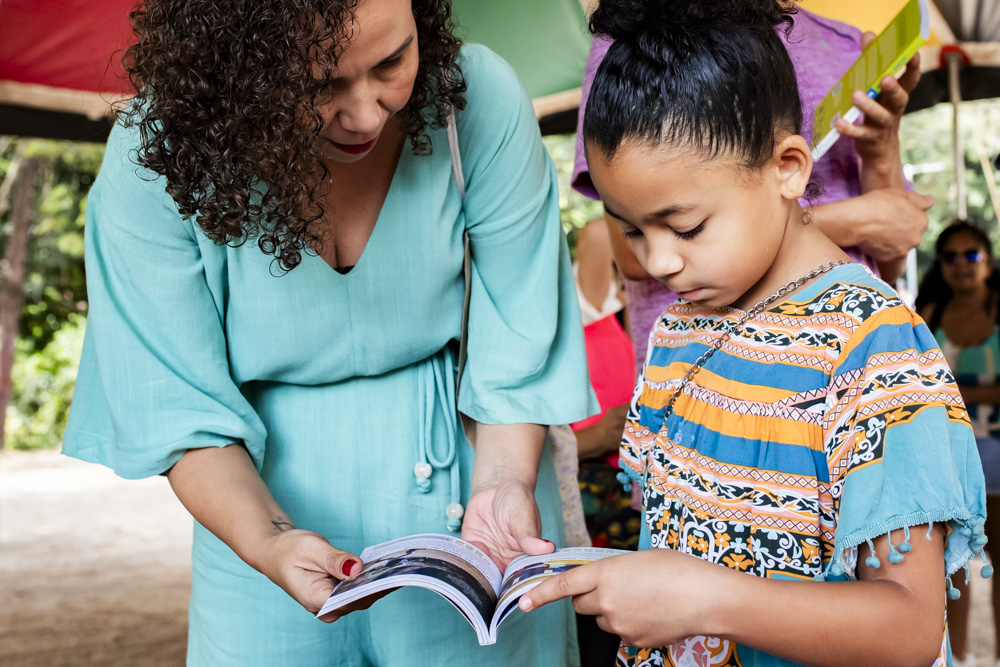 Os encontros para distribuição do nosso livro-guia aconteceram no Parque Lagoa do Nado e na Biblioteca Infantil e Juvenil reunindo famílias e parceiros do Na pracinha em grande ciranda.