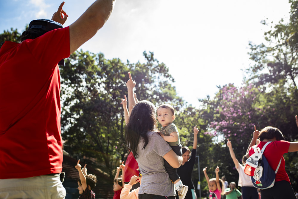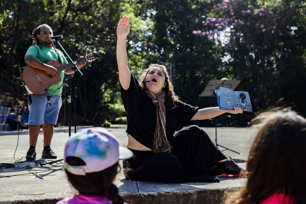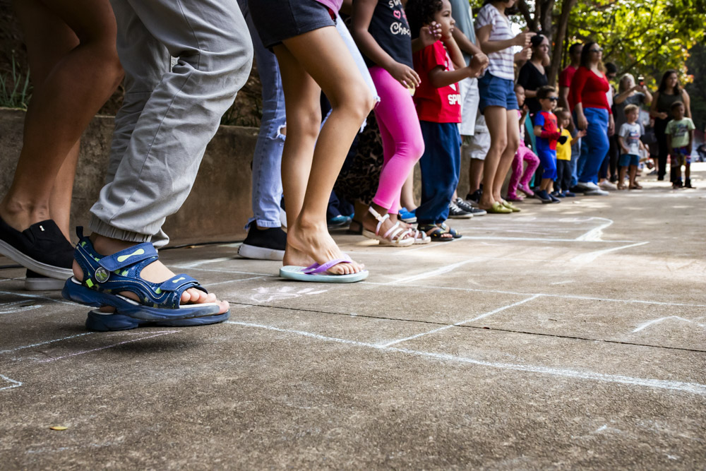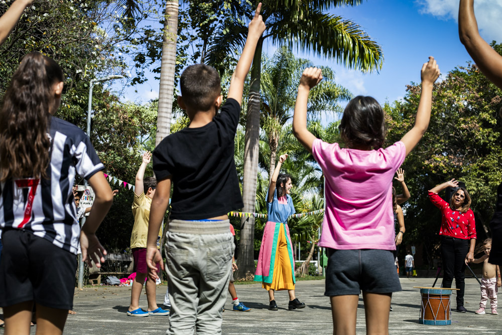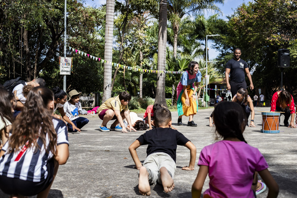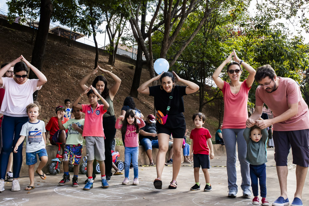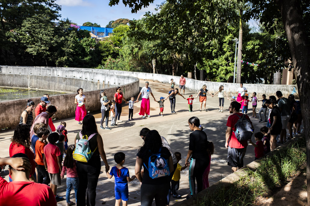 No dia 26 de junho, o céu azulzim confirmou presença no nosso encontro e a gente ocupou um quintal inédito. Foi uma alegria ler e brincar pelo Parque Primeiro de Maio. Teve ciranda e seus movimentos, histórias para todo mundo viver encantado e muitas brincadeiras miúdas.